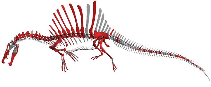 後にネオタイプの標本から、恐らくそれがタイプ標本と同じ種だろうということで、ほかのスピノサウルス類の近縁種、バリオニクス、イリタトル、スコミムス、シギルマッササウルス等で作り上げたのが、新しい復元図である。