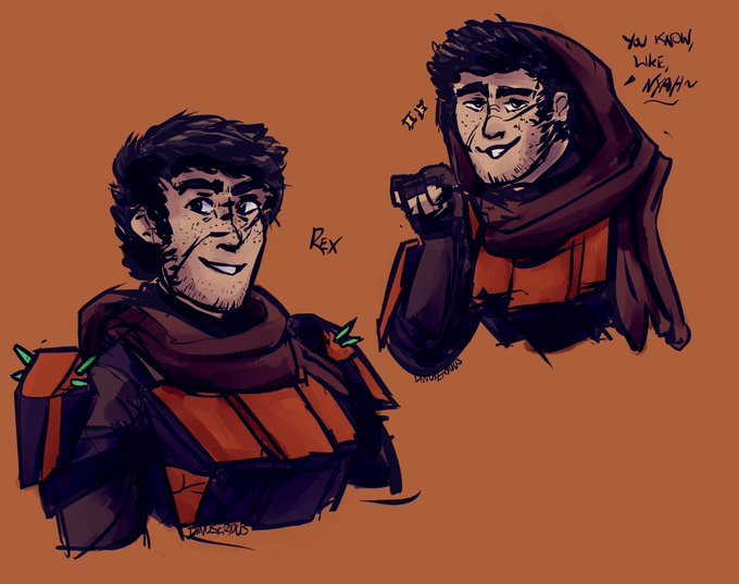 new-ish sketch + older art of rex bc i want to post his face. hes gay and impulsive and loves his dog (skag) sugar