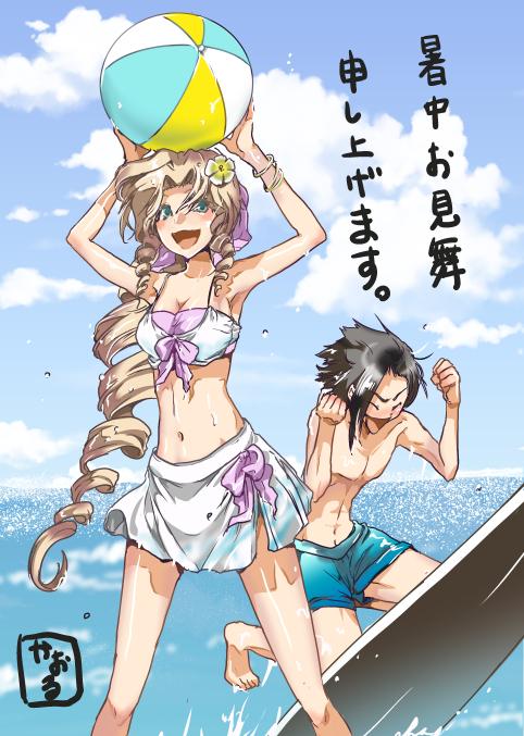暑中お見舞をいただいたので、自分も暑中見舞いを描いてみました。やはり夏は水着!と意気込んで描いみました。後ろのザックスはサーフボードしながらもエアリスの水着を喜んでいるだけだったりしてw