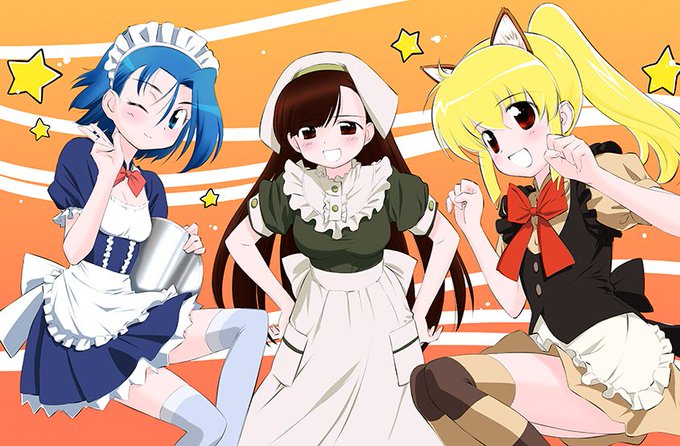 メイドの日らしいので古い絵を引っ張り出したり。 まほろまてぃっく 2009年版アイキャッチから。 なんか目がチカチカするなーw アニメ化3本被った上にマンション理事長と町内会役員やってた人生で一番キツかった時期に描いたやつだわ…。
