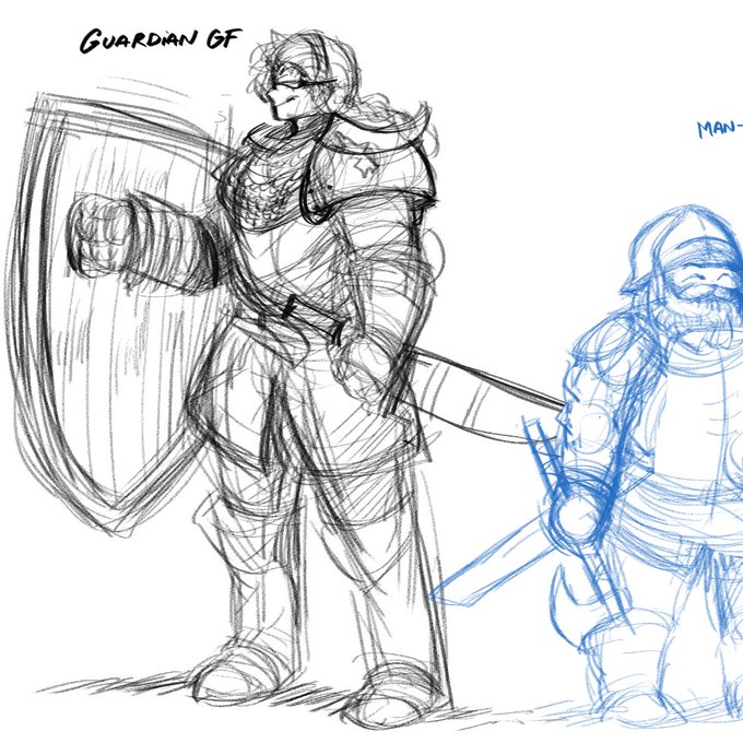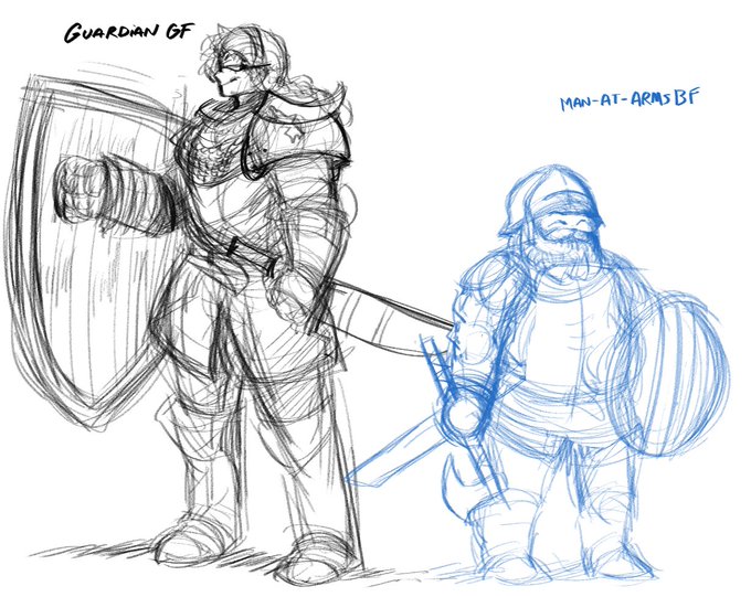 female knight in game has it rough and my footman lookin' good needed to sketch them both