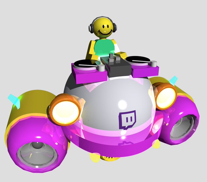 #FETOW4 のフライヤー用にモデリングしたDJニコちゃんが乗ってるブース型宇宙船。カラーリングはもちろんスパンキーコーラスリスペクト!