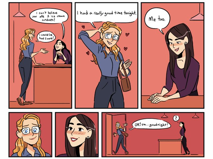 Here’s my comic for this year’s @supercorpzine ! First date! First kiss! These dorks! #Supercorp