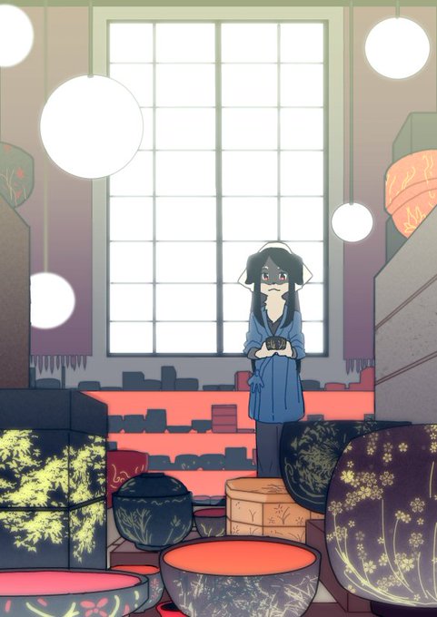 #メスケモ版深夜の真剣お絵描き60分一本勝負 黒→漆黒→漆→漆器という謎の発想。20分オーバー。