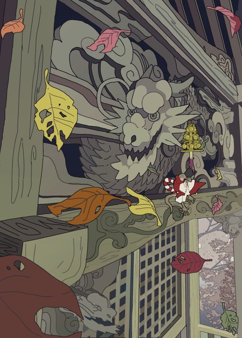 ヤマネ的な何か。葉っぱブラシ沢山作ってみたんで色々やってみた