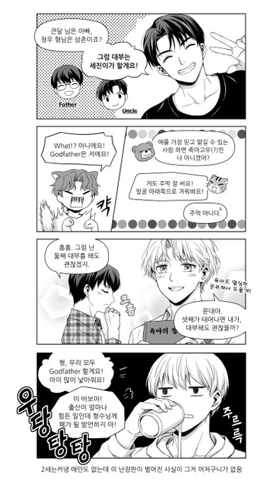 [데못죽 네타주의] 문대의 2세에 대해 (2/2) 멤버들이 와글와글 떠드니 평소 그리던 것보다 더 정신없고 식자작업도 귀찮았습니다.