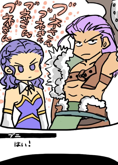 メギドらくがき。ブネとブニ。ブニはなんてことないセリフでもブネと一緒の画面だと背景に「ブネさんブネさんブネさん」という文字が見えてしまう。私だけ?