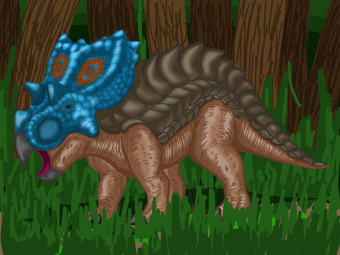 #思弁進化生物絵コンテスト 熱帯地域に生息する角竜類の子孫、ステゴドルスムです。画像の個体はオス。