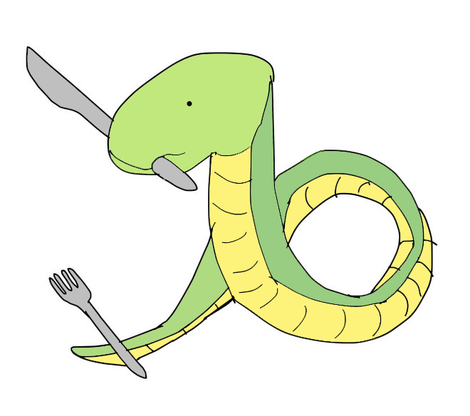 ナイフとフォークを持つ蛇のニュースの見出しを見て想像した物