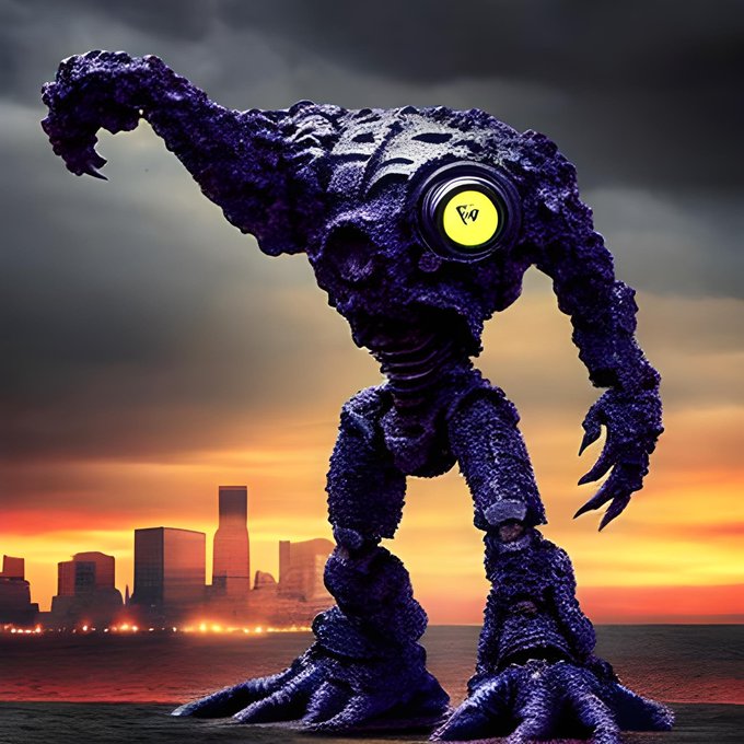 I strongly recommend kaiju and tokusatsu fans and artists to check out https://t.co/Qil0pRs5Z9. This image was made completely on the site in less than 20 minutes, including the text. I used the inpainting options four times to make slight fixes.