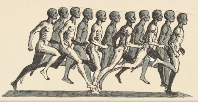 ディズニーのマーク・デイヴィスの動きの研究スケッチでは、(駆け足の絵だが)たしかに軌道の下方のとんがりは滑らかだ。