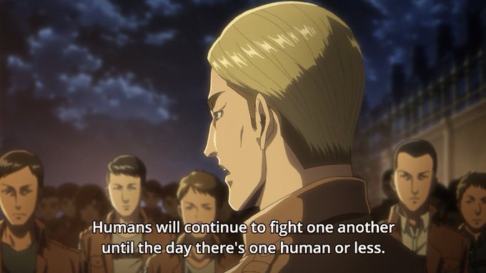 — เออร์วินรู้ว่าสักวันยังไงมนุษย์ก็จะสู้กันเอง (อย่างที่เยเกอร์ริสต์ทำ) และเออร์วินจะหาวิธีต่อต้านทุกอย่าง +