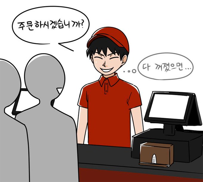[리퀘] 김민경(kmin****) - 뜬금없지만 마왕이 찜질방에서 계란까먹는 장면이랑 용사가 롯데리아에서 알바하는 장면이 보고싶어요