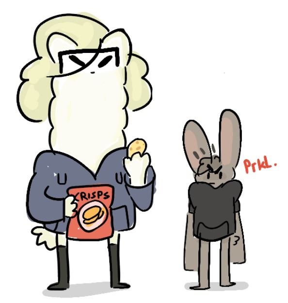 A classmate drew my 184cm ass as a grumpy little hare (and himself as an alpaca). I haven't laughed this hard in ages. Bless @Sandehattu