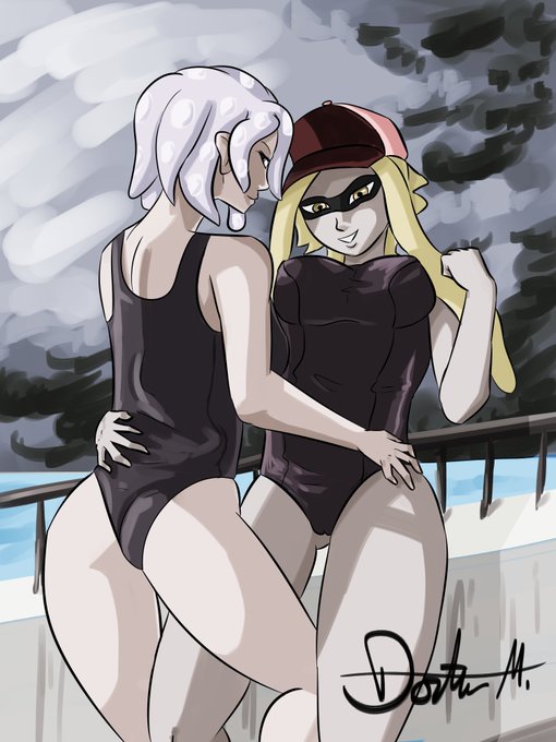 He wanted two of his OCs in swimsuits in this pose. So I did and experimented with the coloring. Here you go, dear patient.