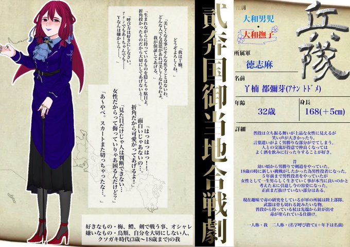 元男性役者で鉈らしき武器で戦場に立つ徳志麻の女性です。