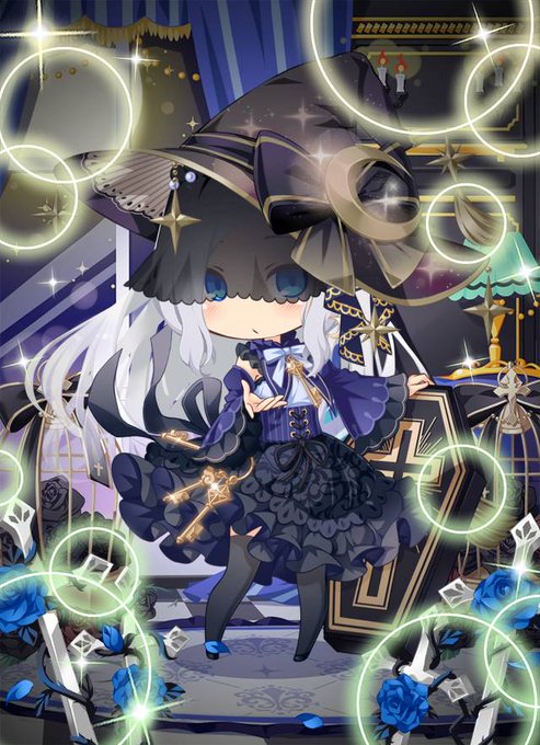 フェアドルちゃん、魔女集会ガチャの折にお着替えさせてた魔女と使い魔揃え その1。 薔薇の魔女妖精(フェ)、その使い魔、葬送の魔女、花の魔術師。