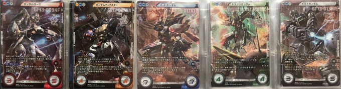 そして豪華5枚繋ぎのシャッフル同盟! 対グランドマスターガンダム戦の決着をアニメとは別の形でイメージした揃い踏み場面だ! マックスターの拳がマスターガンダム部分のボディに決まってるのが熱い! クロスウォー、数も手頃なんで森下Gガン絵を目当てに揃えてみるのもグッドですよっ!