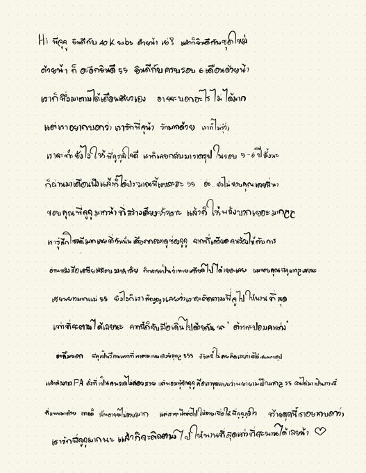ยินดีกับ40Kด้วยนะค้าบ เเล้วก้ยินดีกับชุดใหม่ด้วย เเล้วก้ยินดีกับครบรอบ6เดือนด้วยยย ก้นี่ก้ครบรอบเดือนนึงเเล้วที่ผมมาตาม เราเลยเขียนจดหมายมาให้้((ขออภัยในเรื่องลายมือขอรับ)) / เขินมากไม่เคยเขียนจดหมายให้ใครเลยจริงๆ (รู้สึกหน้าร้อนเเปลกๆ55) >///< รักคุณจูจูนะะ💚/#JuJuFanArt