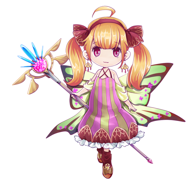 特徴:背中の翅は翅ではなく、リボンなので飛ぶことができません(´・ω・`)
