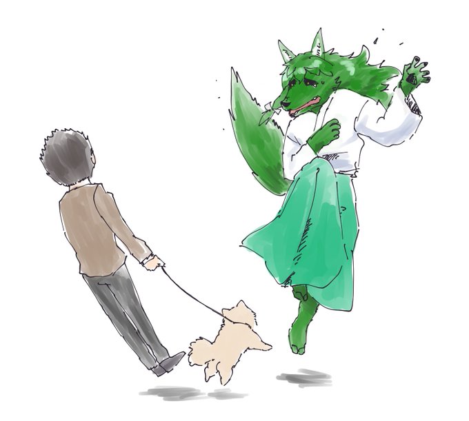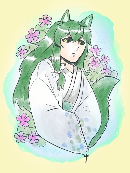 ちちぶら世界の獣人系は完全二足ケモノ状態とケモ耳状態があるのがデフォ、松山姉さんはめっちゃ頑張ってヒト耳が出せるようになったらしい こいつはみつみねぐち、緑の狼