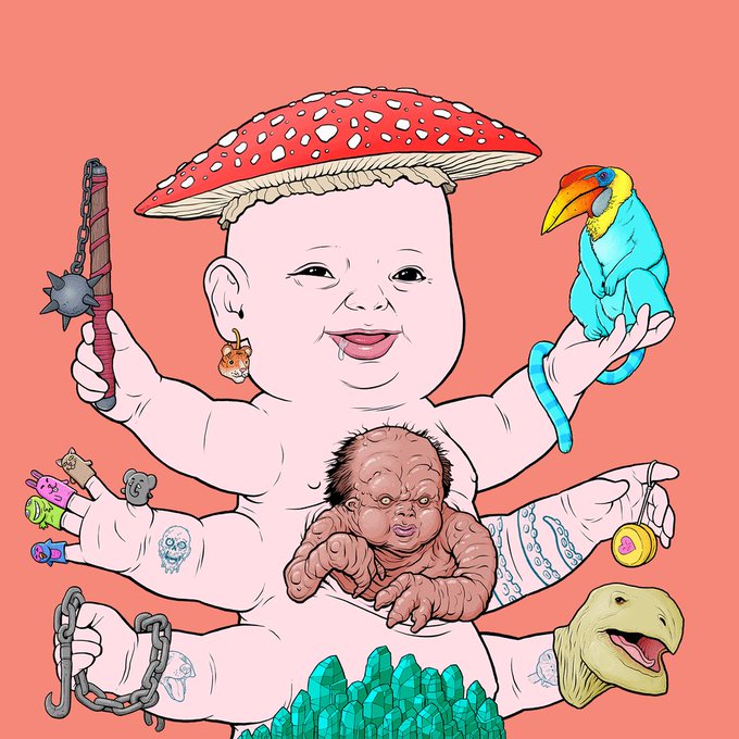 I couldn't resist, there are only 5 of these across the entire 9,998 collection.. Two things of my childhood that I never thought would intersect until the evil genius @Tim_Molloy_Art combined them into 1 trait: T.M.N.T.C.H.U.D.