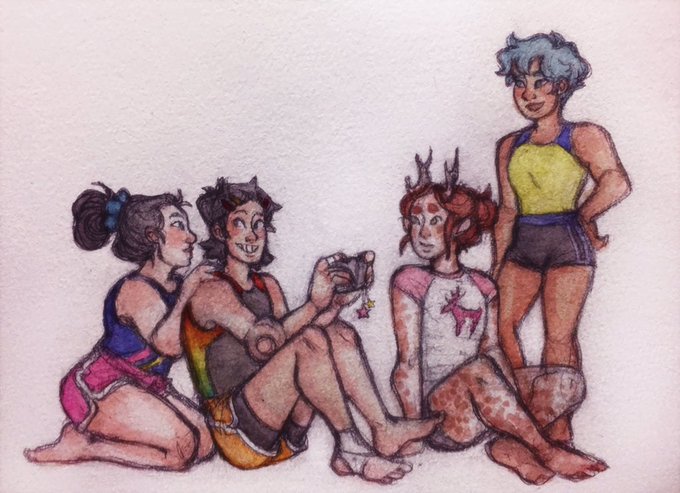 Messy little doodle of my Ojiro family designs! Monkee mom, tail dad, and Mashirao’s three sisters