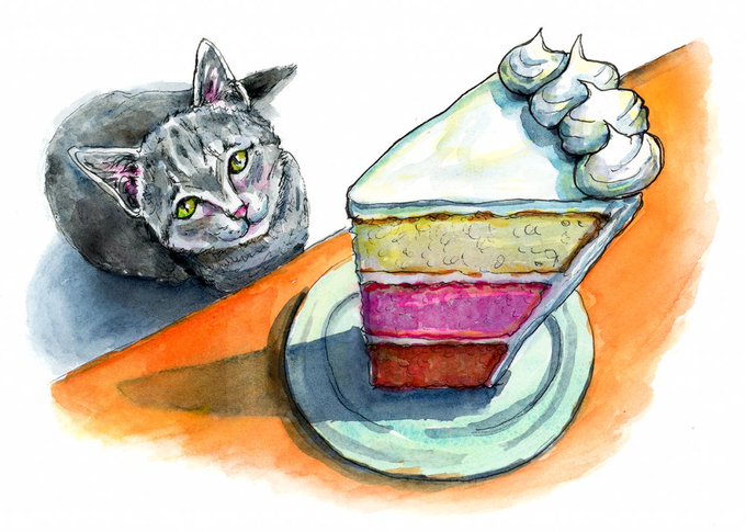 Craving Cake - #doodlewashJanuary2020 #WorldWatercolorGroup #watercolor #cat #cake https://t.co/rFWriS1pS4
