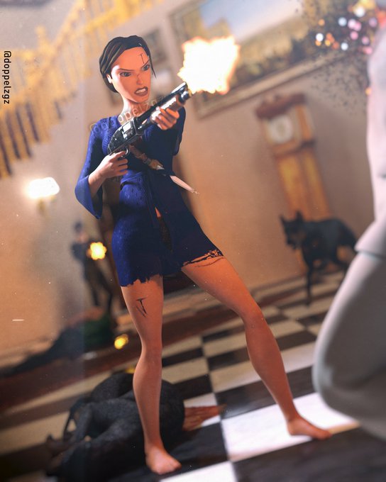 First time using Marvelous Designer to create outfits for Lara. Except for the nipple slip of the cloth simulation... 🙈🙈 i'mhappy of how it looks, now it's time to discover how to fix this lmao.