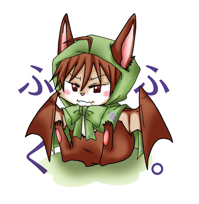 アイコン変えた^^ 雨避けポンチョ着せられて不服なコウモリ冬馬くん(笑)