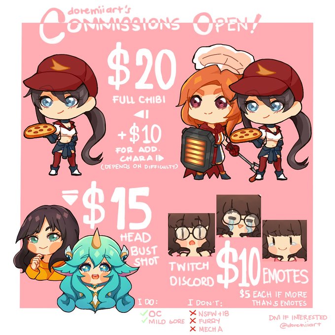 hello and im in need of funds for merch production and hotel fees for december cons so i open my commissions this month ;u; dm or email me if interested! will take a lot of orders since they are pretty pricey ;;u;;