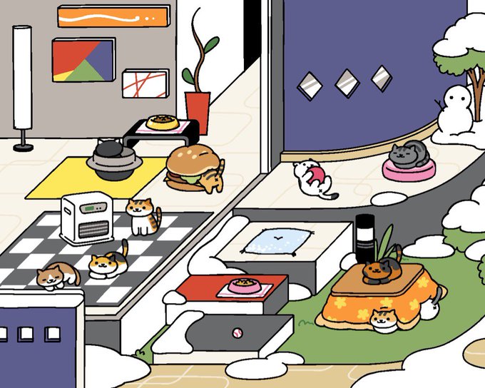 #ねこあつめ 雪景色モダンバージョンには⛄️が!