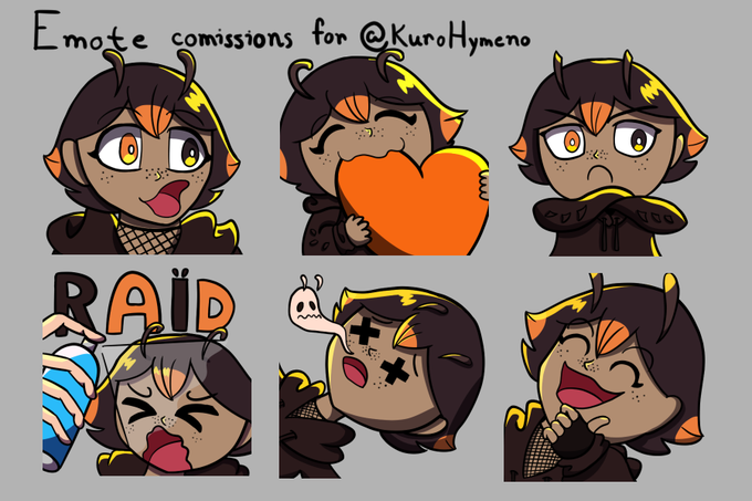 A batch of emotes commissioned by my bro @KuroHymeno ! Thank you for the opportunity!