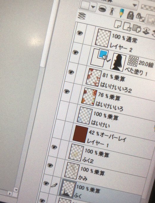 @hnknhrm93 ハイ❗️調子に乗って持って来ました。二枚目がオーバーレイをかけてない元の塗りです。レイヤーを作りバケツで色塗りし、(今回は濃い目の赤)オーバーレイにすると一枚目になります。…って周知の事実だったらスミマセン💦