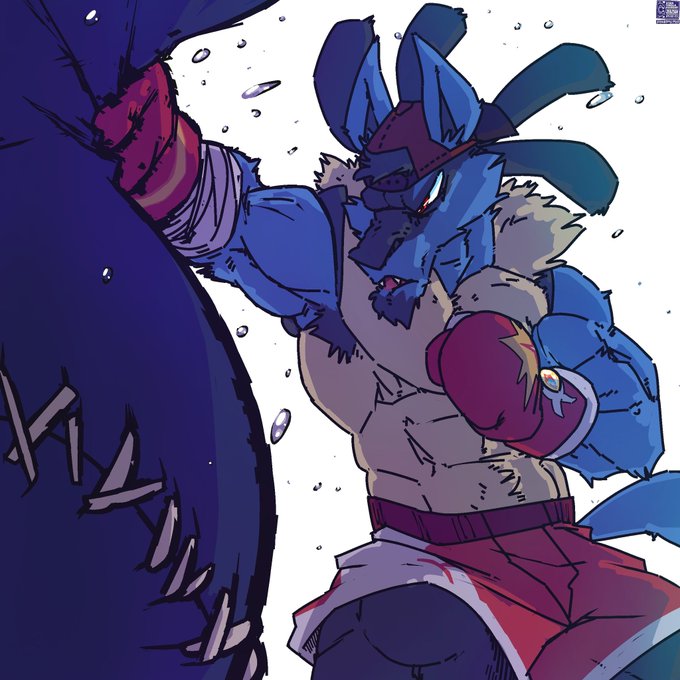 @Hikaristar_art delivered amazingly on another commission, hehe! Mako got dragged into a boxing match with a local hunky Cohock itching to fight, but looks like the shark is gonna show him why he's no pushover!
