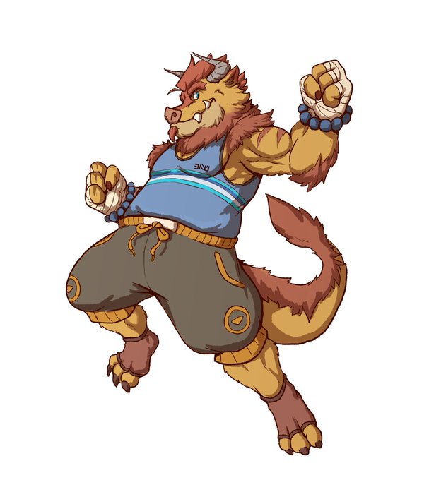 It's the good boxer Akita dog himbo, Miles Luke Finch! And he's ready for anyone to box with this big boof! GAH! This wonderful boxing YCH from @GStewam looks hecking amazing! I'm glad to get art of the boxer boof!