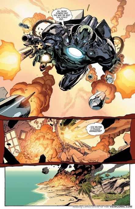 Anyway, we finally get Black Widow's reasons. She's just kind of a bitch who shifts blame from her own government. Anyway, Tony takes her down with relative ease.