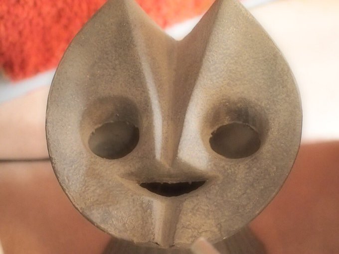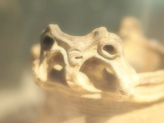 岡本太郎記念館の「生きる尊厳ー岡本太郎の縄文ー」展にて。二階からのぞく太陽の塔… #美術館