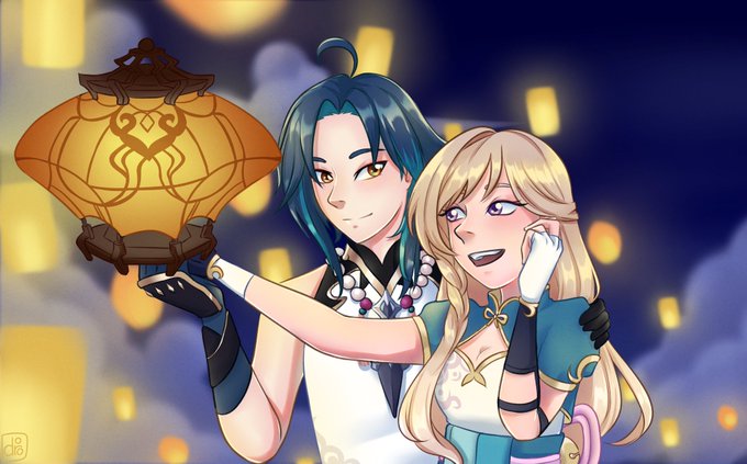 Xiao and Yua releasing a xiao lantern ✨
