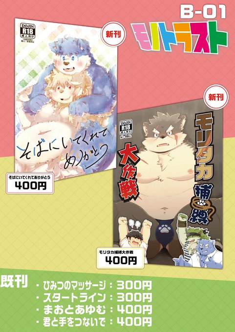 けもケット8にて、ツルギさん(@tsurugi23)とのサークル「モノトラスト」より、新刊『モリタカ捕縛大作戦』を頒布します。モリタカくんがモブにアレコレされるハートフルストーリーです。 スペースはB-01です。無料配布予定のポストカードは「ポストカードクレメンス」って言ってくれたらあげます。