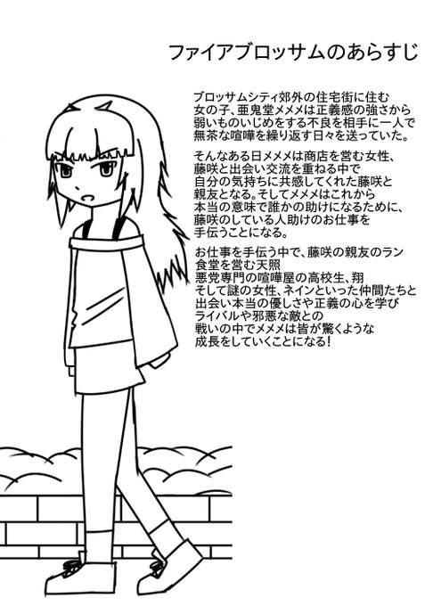 女の子たちが町の問題を解決したり悪と戦うヒーロー創作「ファイアブロッサム」の絵や漫画を描いています!