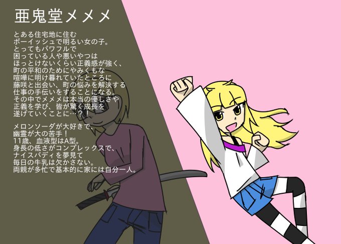 めちゃ強な女の子、亜鬼堂メメメが仲間たちと一緒に怪物や悪と戦って世界の平和を守るヒーロー創作「ファイアブロッサム」やってます!主に絵や漫画を描いています!