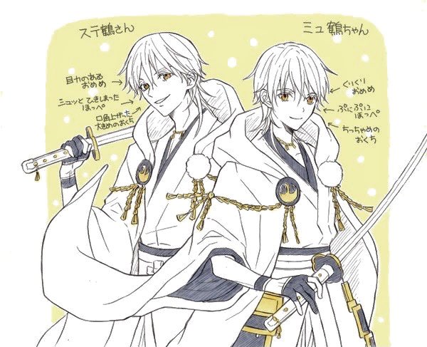 一枚目はミュ鶴のビジュアルが解禁になった時に描いたやつ。 この時はまだ動いて喋るミュ鶴を知らない😳