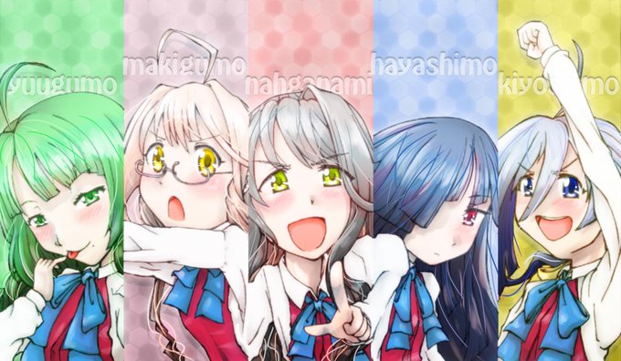ヘッダー用に描きました。 左から、夕雲・巻雲・長波・早霜・清霜です #艦これ #夕雲 #巻雲 #長波 #早霜 #清霜