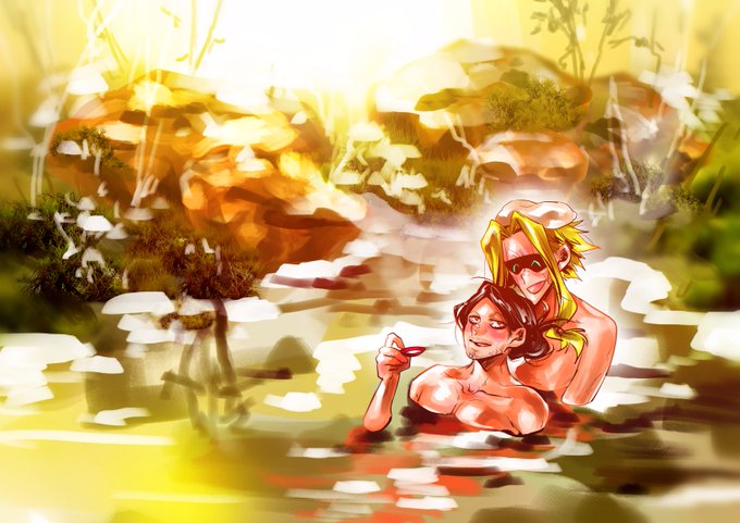 #オル相ワンドロライ お題「温泉旅館デート」 おおえどおんせんには行ったことないのでイメージで描きましたw