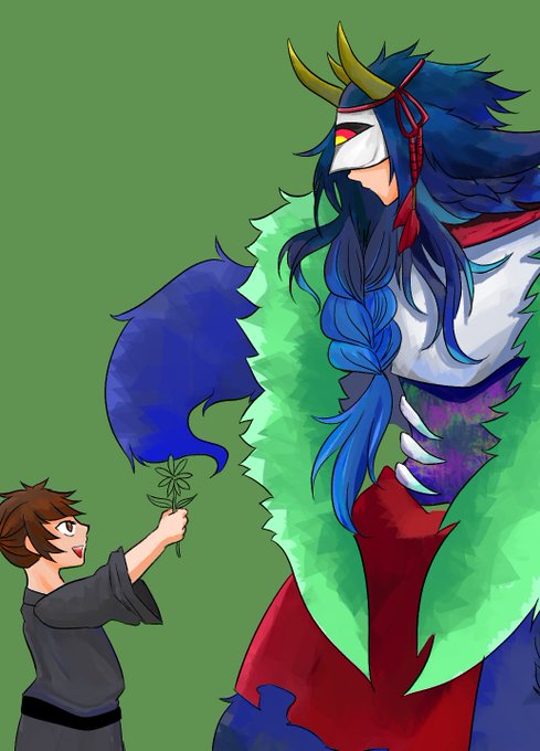 この頃は人間への擬態が下手なので手足がない。左側の男の子に神様と間違われて信仰されてから、男の子の村の守り神みたいなことをやってた。