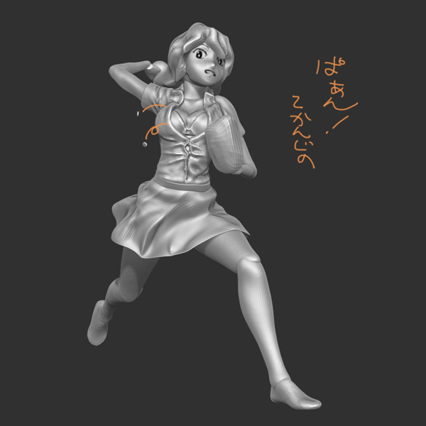 俺オリジナル素体からポーズ付け・・ボーン?とか入ってません。どうにかなるのでヨシ。元絵がある場合は素体を等身やボリューム調整。