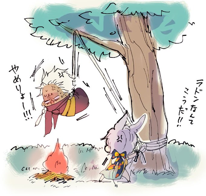 擬人化の際に羽をはやす予定がなかったので飛べる二人には代わりに羽をイメージしたスカーフとマフラーを付けてたのだけれども結局羽を生やしてしまったので結果あんまり意味が無い感じになってしまったのがちょっと心残りと言うか思う所があったかなって言う絵。