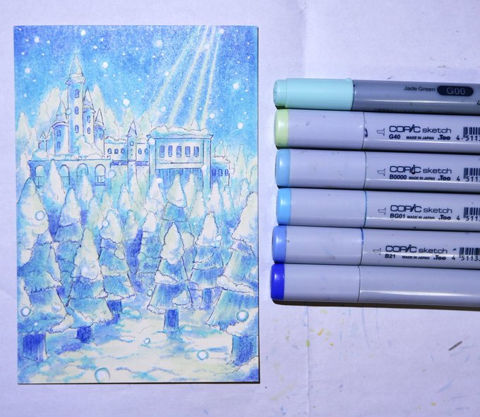 #名刺代わりの作品をあげてください さっきとは違うイラストたちを コピックで背景画描いてるタイプの人間ですー