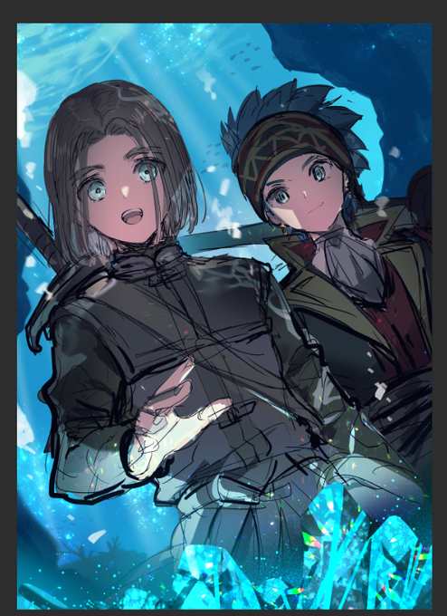 ラフだからレイヤーざっくり統合してぐりぐり描いてるんだけどこのまま仕上げたほうがいいのではという気持ちとそのやり方で描き始めた絵だいたい終わらせどきがわからなくなる(厚塗りが永遠に終わらないのと同現象)からちゃんと描いたほうが早いという気持ちがせめぎ合う